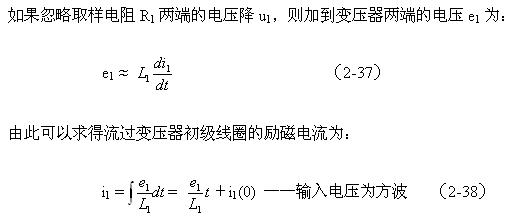 (2-38)式中,e1為加到變壓器T2初級線圈兩端的電壓(這里為方波),或T1變壓器次級線圈輸出的電壓(方波);L1為變壓器T2初級線圈的電感,i1(0)為時間等于零時變壓器T2初級線圈中的勵磁電流。