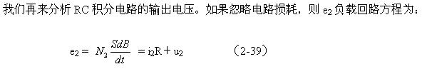 由(2-35)和(2-36)式可以看出,感應電動勢是磁通密度對時間的微分,那么磁通密度就應該是感應電動勢對時間的積分。因此,對磁通密度B進行顯示必須由一個積分電路組成。在圖2-15中,RC電路正好有這種積分特性。