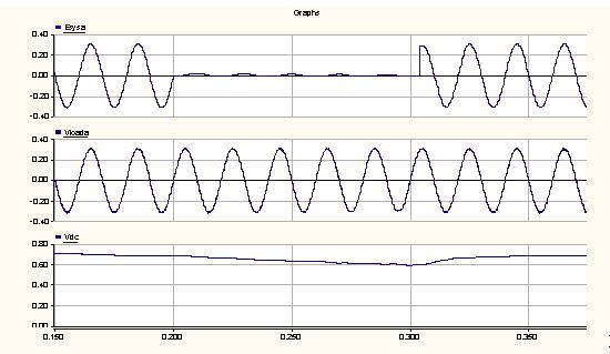 圖2.系統(tǒng)發(fā)生短時供電中斷時,ASD運行的仿真結果