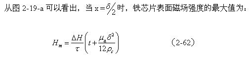 從圖2-19-a中可以看出,由于渦流產(chǎn)生反磁化作用的緣故,在鐵芯或鐵芯片中心磁場強度最低邊緣磁場強度最高。