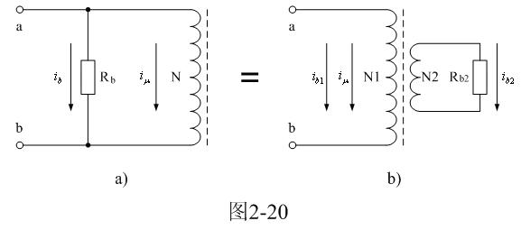 圖2-20-a中,Rb為渦流損耗等效電阻,N為變壓器初級線圈。由此可以看處,由于受渦流損耗的影響,變壓器鐵芯被磁化時,相當于一個渦流損耗等效電阻Rb與變壓器初級線圈N并聯(lián)。