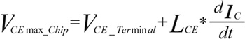 電感LCE對(duì)IGBT關(guān)斷時(shí)產(chǎn)生的過電壓來說是一個(gè)重要的參數(shù),如以下公式所示: