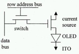 OLED像素的導(dǎo)通和尋址是由主動開關(guān)控制,這個開關(guān)則由薄膜晶體管擔(dān)任,它的制造技術(shù)和TFT液晶顯示器完全相同:電流源已經(jīng)簡化到只需要一個MOSFET與OLED串聯(lián)。有些設(shè)計會使用電壓驅(qū)動架構(gòu),有些則采用電流驅(qū)動架構(gòu),所有設(shè)計都需要二至四顆,甚至更多的整合式薄膜晶體管。