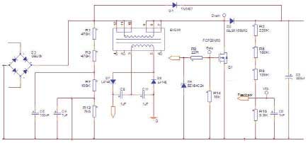 這里采用的控制器是FAN4810,該器件包含了先進的平均電流“升壓”型功率因數(shù)校正實現(xiàn)電路,電源因此能夠完全滿足IEC1000-3-2規(guī)范的要求。它還包含了TriFaultDetect功能,有利于確保不會因PFC中單個組件的故障造成不安全事件。1A的柵極驅(qū)動器又極大降低了對外部驅(qū)動器電路的需求。