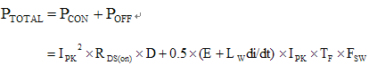 MOSFET的功率損耗由導(dǎo)通損耗和開關(guān)損耗組成,分別如下: