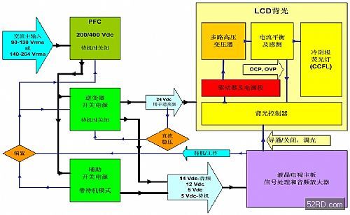 圖1:采用標(biāo)準(zhǔn)直流24V逆變器的傳統(tǒng)液晶電視開關(guān)電源框圖。