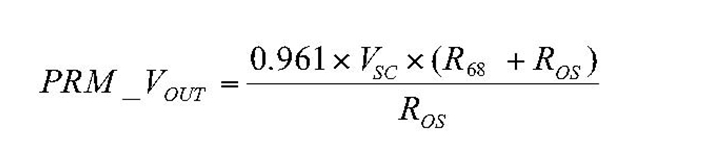 SC電壓經(jīng)緩沖后通過電阻分壓器反饋給誤差放大器,其中電阻分壓器被表示為0.961的增益塊。R68形成了電壓檢測電阻分壓器的上半部分。這個電阻對每個PRM來說都是固定的。分壓器的下半部分是通過在OS引腳和SG(ROS)之間增加一個電阻形成的。公式1將PRM輸出定義為VSC和ROS的函數(shù)。從公式1可以看出,對于給定的ROS電阻,調(diào)整SC電壓可以確定PRM輸出電壓。這就是外部電流控制電路控制輸出所采用的方法。