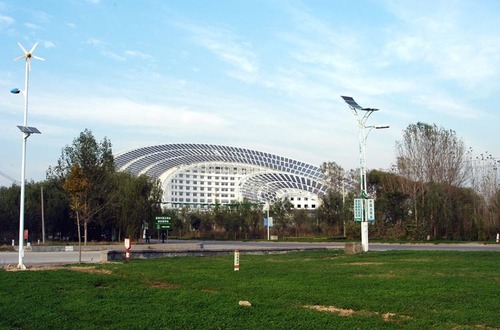 2009年12月24日,圣誕夜,全球最大太陽能辦公大樓正式啟用。這座名為“日月壇-微排大廈”的太陽能大樓,總建筑面積達到7.5萬平方米,集展示、科研、辦公、會議、培訓、賓館等功能于一身,采用全球首創(chuàng)太陽能熱水供應、采暖、制冷、光伏發(fā)電等與建筑結(jié)合技術,是目前世界上最大的集太陽能光熱、光伏、建筑節(jié)能于一體的高層公共建筑。