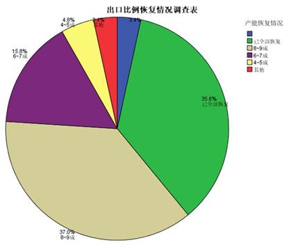 - 出口下降最嚴(yán)重程度5-6成者占17.8%,但35.6%已全部恢復(fù)