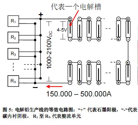 在電解鋁工業(yè)中,過程電流和串聯(lián)電解槽數(shù)目有逐步擴大的趨勢,目前已有系統(tǒng)設(shè)計采用350kA電解電流和1600V的直流電壓。在不久的將來,高達500kA過程電流的電解鋁生產(chǎn)線也將成為現(xiàn)實。