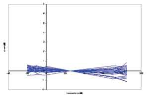 帶隙基準(zhǔn)源中的電流級(jí)存在一定的生產(chǎn)差異(productionvariation),使得25℃時(shí)的基準(zhǔn)額定值、曲率形狀和曲線最平坦部分的位置都會(huì)發(fā)生各種變化,因此需要進(jìn)行工廠校準(zhǔn),以盡量減小這種變化的影響,圖3所示為一個(gè)未校準(zhǔn)基準(zhǔn)源帶來(lái)的變化實(shí)例。在-20~+85℃的溫度范圍內(nèi),最高差異為-0.9~0.20%。而圖3則顯示有兩個(gè)離群點(diǎn)的曲線跟大多數(shù)其他器件的曲線有相當(dāng)大的差異。