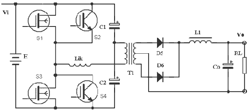 這種技術(shù)因通態(tài)損耗很低而使得DC/DC變換器的效率很高。但需工作頻率相對(duì)較低,一般選取20~40kHz。由于半橋組合開關(guān)只需兩個(gè)開關(guān),總的開關(guān)器件的數(shù)目少,使可靠性顯著提高。