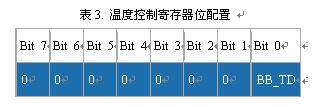 DS3234加入了溫度控制寄存器,當(dāng)器件由備用電源供電時(shí)可以禁止溫度更新。寄存器中的BB_TD位控制溫度測量禁止。該位上電時(shí)的默認(rèn)值為0,溫度更新功能有效。寄存器定義如表3所示。