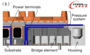SkiiP技術中有一個方案解決了基板和焊接連接方面的問題,即將基板和與襯底相連的大面積易疲勞焊接連接全部去除,轉而采用受專利保護的壓接系統(tǒng)。在壓接系統(tǒng)中,襯底通過機械壓力被壓在散熱器上。由于陶瓷襯底比較靈活并且壓力是通過幾個點上的機械“手指”施加的,可保證陶瓷襯底和散熱片之間的接觸非常緊密。因此,散熱涂層的厚度可以減少僅為(20-30)µm。相比之下,帶基板模塊的散熱涂層的厚度為100µm。