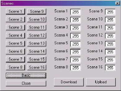 按下“scenexx”按鈕可工作在預(yù)先定義的背景級,背景級的選擇支持所有工作模式,利用主界面的“廣播”尋址并按下“scene3”按鈕將使所有電子鎮(zhèn)流器預(yù)先定義的“scene3”背景級(如果預(yù)先有定義)。