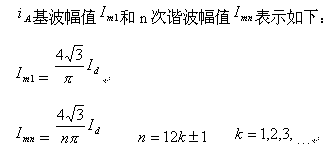 即輸入電流諧波次數(shù)為 12K±1,其幅值與次數(shù)成反比而降低。這樣使得網(wǎng)側(cè)5次和7次諧波電流大大減少。