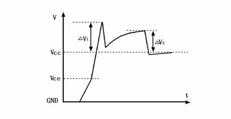 在圖5中,Vce起始電壓的毛刺ΔV1是由緩沖電路的寄生電感LS和緩沖二極管的正向恢復(fù)引起的。其主要部分取決于寄生電感LS: