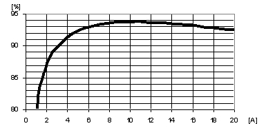 由于基準模擬POL穩(wěn)壓器的特性是在12V的輸入電壓下獲得的,故在數(shù)字設計中也采用相同的輸入電壓以便比較。順便說明,對于數(shù)字設計來說,采用更低的輸入電壓時效率會更高。例如,當輸入電壓為9.6V時,在半負載點上效率又提高1%(達到94.8%)。關于這點在研究整體電源系統(tǒng)優(yōu)化時將是非常有趣的問題。