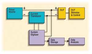 電池消耗分析中使用的電源必須獨(dú)立于電池來描述DUT。電源必須有快速的響應(yīng),以盡量減小DUT在切換模式或傳輸脈沖時所具有的快速回轉(zhuǎn)電流脈沖所造成的瞬態(tài)電壓跌落。
