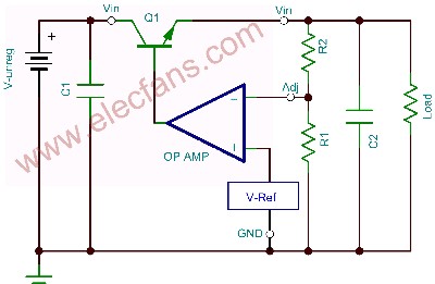 圖1基本的線性穩(wěn)壓器三端可調(diào)穩(wěn)壓器的輸出電壓如圖2所示