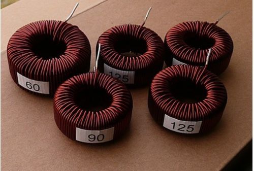 磁環(huán)是采用直徑40MM的鐵硅鋁磁環(huán),用1.18的線(xiàn),在上面穿繞90圈,線(xiàn)長(zhǎng)約4.5米,如果用導(dǎo)磁率為125的磁環(huán),電感量大約在1.5mH,用導(dǎo)磁度為90的磁環(huán),電感量大約在1mH左右。我做過(guò)試驗(yàn),用二個(gè)這樣的磁環(huán),每個(gè)電感量在0.7mH以上就可以正常工作了。繞制時(shí)分二層,第一層,45圈,因?yàn)榇怒h(huán)外圈和內(nèi)圈的周長(zhǎng)不同,所以第一層繞時(shí),內(nèi)圈的線(xiàn)要緊密排列,而外圈的線(xiàn)是每圈之間留有一個(gè)空隙的。繞第二層時(shí),內(nèi)圈是疊在第一層線(xiàn)上,外圈是嵌在第一層線(xiàn)的空隙中,這樣繞出來(lái)的線(xiàn)圈才好看。當(dāng)然,好象是否好看,也不影響使用。下面是我在淘寶上買(mǎi)過(guò)磁環(huán)的網(wǎng)店(無(wú)意為商家做廣告,只是方便朋友們采購(gòu))。注意,繞這個(gè)磁環(huán)時(shí),一定要戴手套,否則,導(dǎo)線(xiàn)會(huì)讓你勒出血泡的。