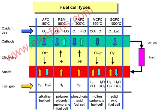燃料電池是一種設(shè)備,它能利用氫這種地球上最豐富的元素將化學(xué)能轉(zhuǎn)化為電能。PEM燃料電池(最常用的一種燃料電池)中,在多孔陽(yáng)極(porousanode)與陰極之間有一層電解膜。這層電解膜由一種允許質(zhì)子通過(guò)但阻擋電子通過(guò)的特殊材料制成。PEM電池工作時(shí),讓氫氣和氧氣分別通過(guò)陽(yáng)極與陰極,從而產(chǎn)生電流。陽(yáng)極發(fā)生接觸反應(yīng)將氫氣分解為質(zhì)子,這些質(zhì)子通過(guò)PEM到達(dá)陰極。電子不能穿透PEM,所以會(huì)沿著其周?chē)囊粭l電路到達(dá)陰極,這條電路中電子的移動(dòng)就形成了電流。