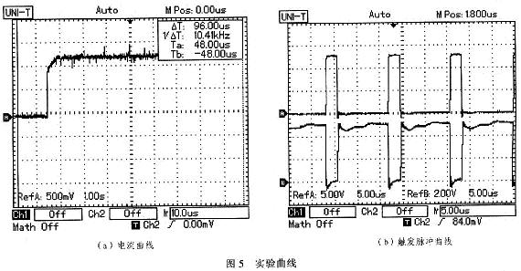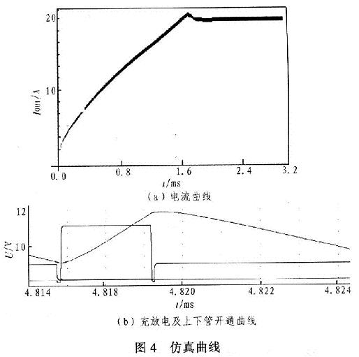 實驗曲線如圖5所示,實驗數(shù)據(jù)為輸入電壓12V,輸出電壓2V左右,測量電阻0.0025Ω,最大輸出電流20A。