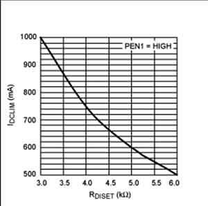 充電速度由下面幾個(gè)因素決定:電池電壓、USB/DC輸入電流限制、充電電流設(shè)置電阻(RCISET)、ISYS以及管心溫度。MAX8671X為了防止輸入過載和過熱,可自動(dòng)將充電電流降至某個(gè)低于所設(shè)置的充電速率的數(shù)值。