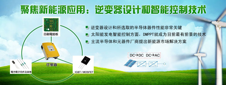 太陽能發(fā)電系統(tǒng)對半導體器件有什么樣的要求?這篇文章可以告訴大家。A/D轉換器、整流器、IGBT模塊、驅動、傳感、MCU以及電容等元器件廠商都有望在新得市場上獲得契機。這些器件中,最重要的是逆變器,它的任務是把光伏單元可變的直流電壓輸出轉換為清潔的50Hz或60Hz的正弦電壓源,為了保證輸出電壓的穩(wěn)定,需要一系列器件的配合,例如傳感器來跟蹤太陽方位角、A/D轉換器來實現(xiàn)數(shù)據(jù)轉換,MCU來實現(xiàn)穩(wěn)定輸出的算法……那么主流半導體和元器件廠商是如何針對新能源市場打造解決方案的?我們將業(yè)界的趨勢和熱點作一次總結,希望對讀者提供一定參考。