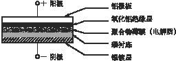 這兩個(gè)系列電容器的內(nèi)部結(jié)構(gòu)如圖1所示,用鋁極做陽極,在下表面用電解工藝制成一層氧化鋁絕緣層。采用高分子聚合物薄膜作為固態(tài)電解質(zhì),由碳襯底及鍍銀層作為陰極,外部用塑料封裝。這種多層結(jié)構(gòu)與鋁電解電容器及固態(tài)鉭電解電容器是不同的,在0.1MHz~10MHz頻段有很好的特性。