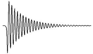 當(dāng)被磁化的鐵粉通過(guò)衰減的正弦波磁場(chǎng)時(shí),能夠達(dá)到有效的退磁效果。退磁效果與正弦波的頻率有關(guān),當(dāng)頻率大于800Hz時(shí),退磁效果明顯變好。退磁效果還與磁場(chǎng)強(qiáng)度有關(guān),通常磁場(chǎng)強(qiáng)度大于矯頑磁力的5倍即可。為了達(dá)到上述性能指標(biāo),目前普遍采用的電路形式如圖1所示,工作原理如下:當(dāng)可控硅SCR2導(dǎo)通時(shí),電感L1、電容C1構(gòu)成一個(gè)并聯(lián)諧振回路,如果初始狀態(tài)電容C1兩端有電壓,則震蕩電路會(huì)產(chǎn)生衰減的正弦波震蕩,波形如圖2所示。這樣就在線(xiàn)圈內(nèi)形成了與之同樣的磁場(chǎng)。該正弦波應(yīng)該從最高的幅度逐漸衰減到0,才能保證更好的脫磁效果。