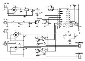 stc12c4052ad單片機(jī)自帶A/D轉(zhuǎn)換器,具有高速、高可靠性,強(qiáng)抗靜電(過(guò)4kV快速脈沖干擾),強(qiáng)抗干擾,寬電壓,不怕電源抖動(dòng)等特點(diǎn)。它完成同步信號(hào)檢測(cè)(P3.2口,int0中斷輸入端)、控制信號(hào)輸出(P3.4、P3.5)、輸出強(qiáng)度調(diào)整(P1.1)和工作狀態(tài)指示等功能;整流橋Z1、三端穩(wěn)壓塊u2等構(gòu)成穩(wěn)壓電源,為整個(gè)控制電路提供電源;r1、r2、Q2等完成交流同步信號(hào)的輸入,其中,r1、C7、r2、C8濾除高頻脈沖的干擾,同步信號(hào)輸入到單片機(jī)的int0端;整流橋z2、z3、Q3、Q4等構(gòu)成獨(dú)立的電源,分別驅(qū)動(dòng)可控硅SCR1、SCR2;光耦G1、G2將低壓控制電路與高壓驅(qū)動(dòng)電路隔離,既保證了控制芯片和人身安全,同時(shí)具有抗干擾作用;三極管Q1及周?chē)娐?,用于上電延時(shí)。上電時(shí),C14不能突變,所以Q1處于截止?fàn)顟B(tài),Q3、Q4都不能導(dǎo)通,在單片機(jī)初始化完成后,P3.4、P3.5處于正常狀態(tài)時(shí),Q1進(jìn)入導(dǎo)通狀態(tài),避免了SCR1和SCR2同時(shí)導(dǎo)通。