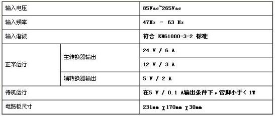 其工作原理是,如果反饋信號(hào)水平降至突發(fā)進(jìn)入閾值(FB1)以下,并持續(xù)一段時(shí)間,控制IC進(jìn)入主動(dòng)突發(fā)模式。這時(shí)開關(guān)脈沖停止,輸出電壓則會(huì)降低,然后反饋電壓升高。當(dāng)它升到突發(fā)開始水平(FB3),開關(guān)脈沖恢復(fù)。在處于突發(fā)模式期間,輸出會(huì)升高,反饋電壓開始降低。當(dāng)它降到突發(fā)結(jié)束水平(FB2),開關(guān)脈沖再次停止。這種突發(fā)交替性結(jié)束開始,構(gòu)成主動(dòng)突發(fā)模式。如果負(fù)載由輕載提高至重載,反饋電壓值將開始提高。如果反饋電壓水平超過突發(fā)退出閾值(FB4),IC將離開主動(dòng)突發(fā)模式。屏蔽時(shí)間和其他2個(gè)閾值(FB1和FB4)可有效降低錯(cuò)誤觸發(fā)突發(fā)模式的幾率。最后,如果IC進(jìn)入主動(dòng)突發(fā)模式,最大峰值電流閾值將降至原始值的三分之一或四分之一。這可大大降低變壓器電流噪音。除了待機(jī)轉(zhuǎn)換效率,還可降低輸出電壓、主總線和輸入電壓感測(cè)功率損耗。例如,在主功率級(jí)的輸入電壓采樣部分采用4MΩ電阻分壓器。系統(tǒng)性能表1推薦解決方案的技術(shù)規(guī)格