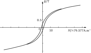 圖4是有效磁導(dǎo)率為75的鐵粉心的靜態(tài)磁滯回線,和鐵氧體材料相比,有高的Bs值,不易飽和,因此體積至少可減小一半,采用廉價的鐵粉作原料,并且不需要開口,沒有噪聲,成本可大大降低,價格可以和鐵氧體比擬,以27×14×11的規(guī)格為例,它可以承受400安匝而不飽和,優(yōu)點(diǎn)突出。