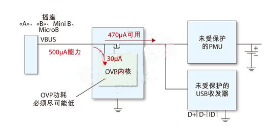 當(dāng)處在暫停模式時,與Vbus線路串連的OVP器件將呈現(xiàn)最低的電流消耗,并由收發(fā)器啟動序列喚醒過程(圖2)。