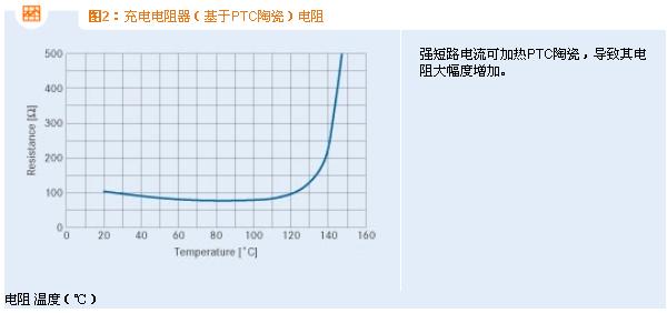 為處理典型故障,比如電容器短路或短路開(kāi)關(guān)失靈,建議使用J20X系列自我防護(hù)式充電電阻器。在無(wú)故障充電中,這些元件的作用就像固定式普通電阻器,可制約充電電流的峰值。當(dāng)發(fā)生故障時(shí),PTC陶瓷的溫度和內(nèi)阻將隨加大的歐姆損耗一同增加(見(jiàn)圖2),并將電流限定在安全級(jí)別。