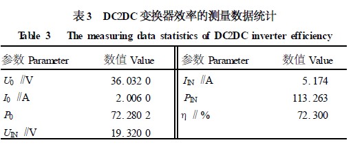 (5)DC2DC 的變換效率。分別用5 位半的數(shù)字表測(cè)得負(fù)載電壓和電流與DC2DC 變換器的輸入電壓和電流,然后計(jì)算出輸入和輸出功率,便可計(jì)算出效率。