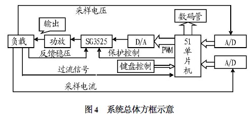 (2) 嵌入式方案。采用51 單片機(jī)小系統(tǒng)板對(duì)PWM芯片進(jìn)行控制,并對(duì)A/ D 和D/ A 進(jìn)行控制和采樣。采用以7279 為核心的按鍵掃描顯示模塊進(jìn)行鍵控和顯示。該方案編程比較容易,控制很方便,顯示也很容易實(shí)現(xiàn)。經(jīng)綜合比較考慮,筆者選擇采用嵌入式解決方案。