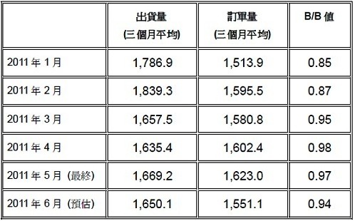 - 2011年6月北美半導(dǎo)體設(shè)備B/B值0.94