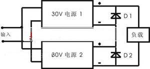220V交流電壓經(jīng)整流和濾波后得到320V左右的直流電壓,加至電源模塊輸入端。單DC-DC模塊的最高輸出電壓一般為+48V,要得到+60V的直流輸出電壓,必須采用模塊串聯(lián)的方法得到。設計采用兩塊PH600S280-28 DC-DC模塊(調(diào)至+30V輸出),通過串聯(lián)得到+60V的輸出電壓,如圖1所示。