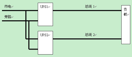 對于一般的UPS系統(tǒng)應(yīng)用來說,存在兩種常見的配置方式,一種是雙機熱備份,見下圖所示