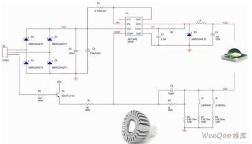 圖1:安森美半導(dǎo)體離線式第二代LED驅(qū)動(dòng)器NCP1014/1028的應(yīng)用示意圖。