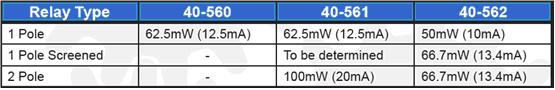 40-562系列BRIC模塊的額定負(fù)載電流是1.2A,開關(guān)觸點(diǎn)上的功耗較高,對(duì)于單相的來說是173mW。這里額外的功率損耗要多于線圈上的功耗。