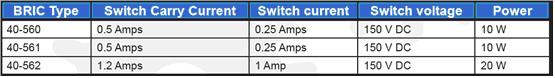 40-560系列和40-561系列BRIC模塊的最大負(fù)載電流是0.5A,接觸電阻是120 MΩ,開關(guān)觸點(diǎn)閉合時(shí)會(huì)產(chǎn)生30mW的功耗。這個(gè)結(jié)果要好于線圈產(chǎn)生的65mW到100mW的功耗。一些額外的溫升也是很明顯的,但是并不是至關(guān)重要的。額外的溫度作用影響不大。