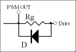 以上討論的是MOSFET ON狀態(tài)時(shí)電阻的選擇,在MOSFET OFF狀態(tài)時(shí)為了保證柵極電荷快速瀉放,此時(shí)阻值要盡量小。通常為了保證快速瀉放,在Rg上可以并聯(lián)一個(gè)二極管。當(dāng)瀉放電阻過小,由于走線電感的原因也會(huì)引起諧振(因此有些應(yīng)用中也會(huì)在這個(gè)二極管上串一個(gè)小電阻),但是由于二極管的反向電流不導(dǎo)通,此時(shí)Rg又參與反向諧振回路,因此可以抑制反向諧振的尖峰。
