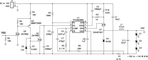 這種反相升降壓電路為工程師提供了另一種驅(qū)動(dòng) LED的方法。低成本降壓控制器的使用以及較少的元件數(shù)量使其成為替代高復(fù)雜度拓樸的一種理想方法。