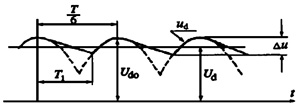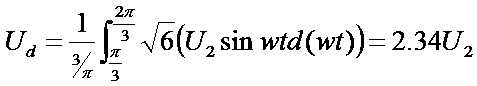 整流輸出電壓Ud的波形在一個(gè)周期內(nèi)波動(dòng)6次,且脈動(dòng)波形相同,因此: