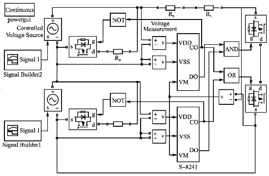 圖5 2節(jié)鋰電池串聯(lián)均充保護(hù)仿真模型