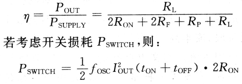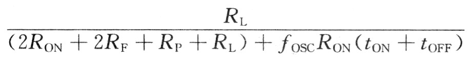 假設D類功放MOSFET導通電阻為RON,所有其他無源電阻為RP,濾波器電阻為RF,負載電阻為RL,則不考慮開關損耗的效率為: