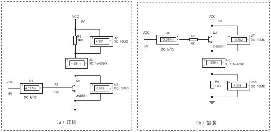 初學者使用晶體管驅動負載時,有時會錯誤地把負載接在晶體管發(fā)射極一端,如圖3(b)所示,這樣做負載上得到的功率會比較小。我們可以通過仿真來分析。